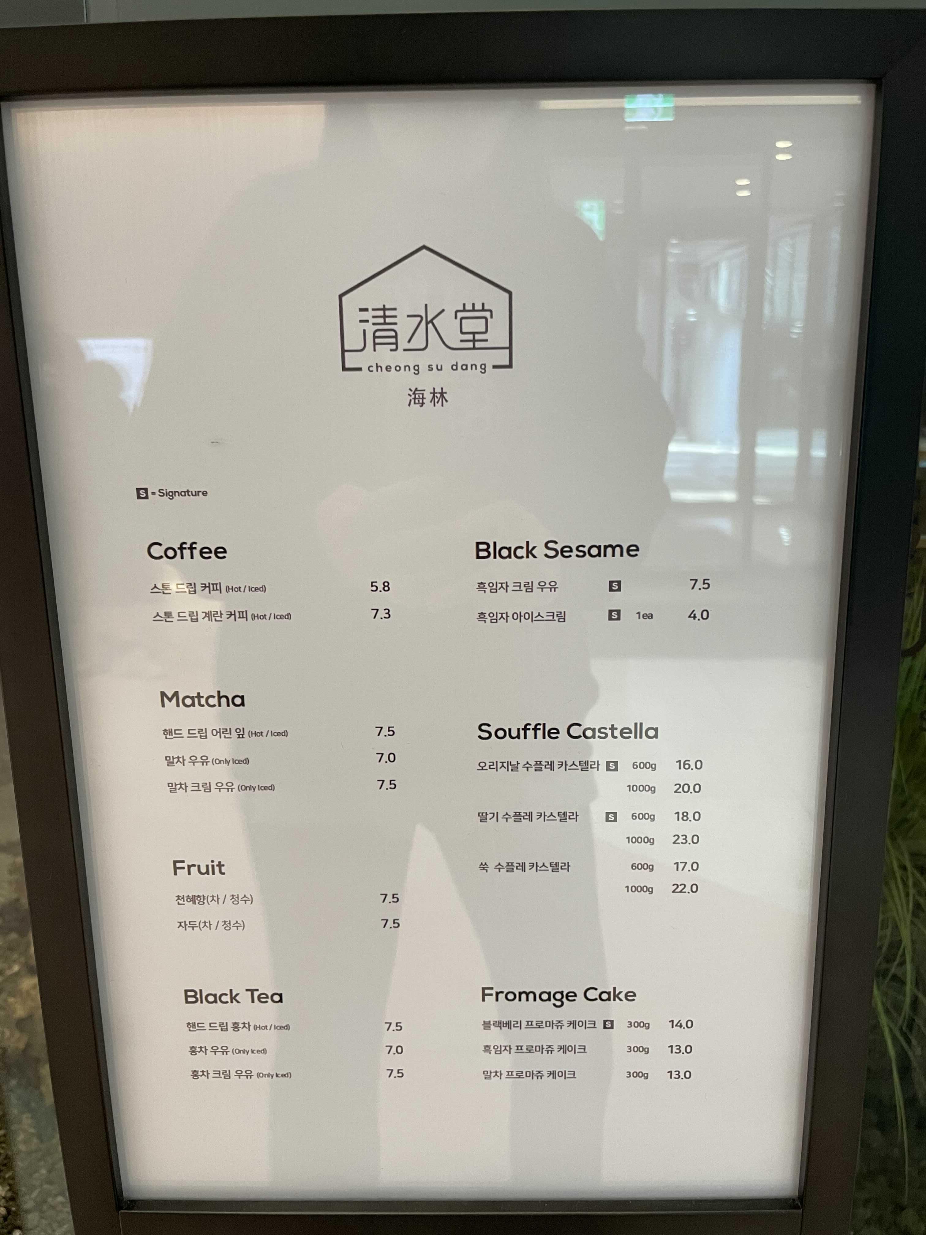 청수당 해림 광교점에서 판매하는 음료와 디저트의 가격정책은 이렇습니다~ 디저트류가 맛있을것 같긴 한데 가격을 보니 여기가 익선동이네요ㅎㅎ