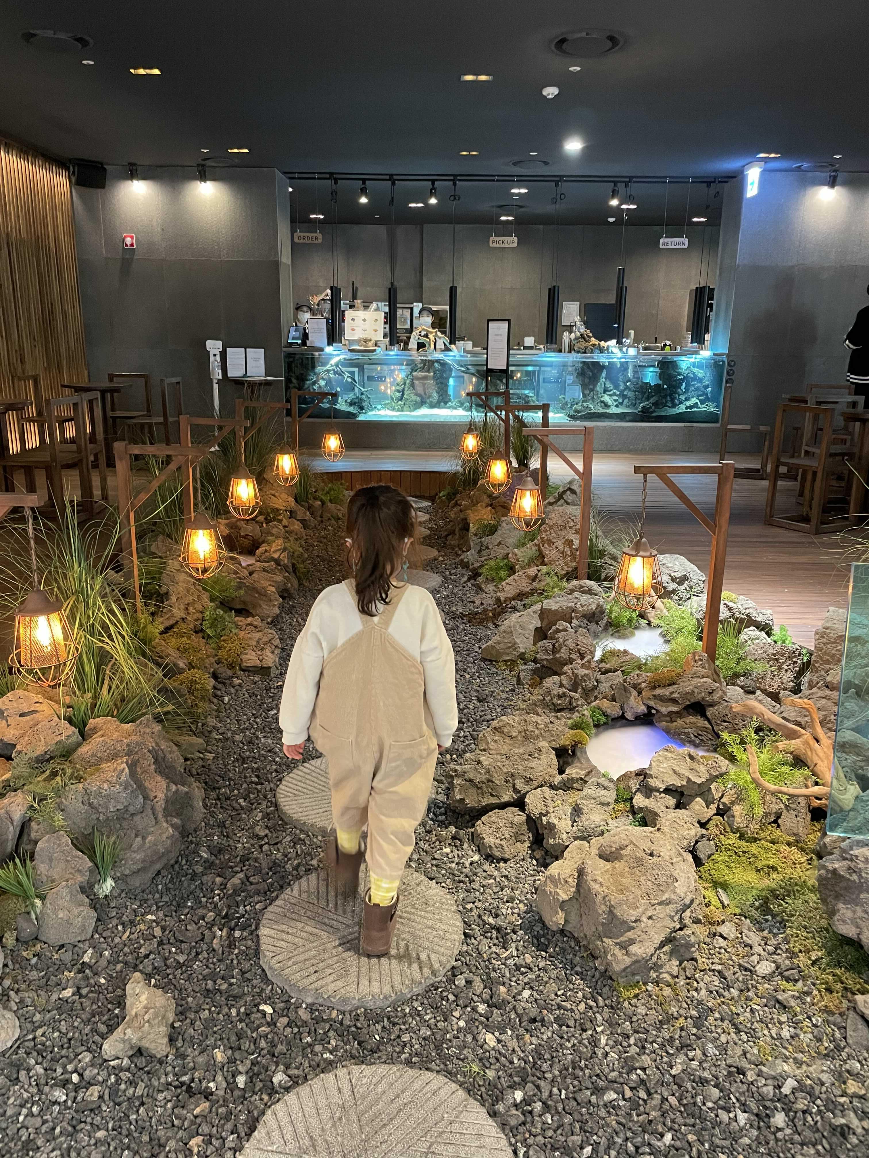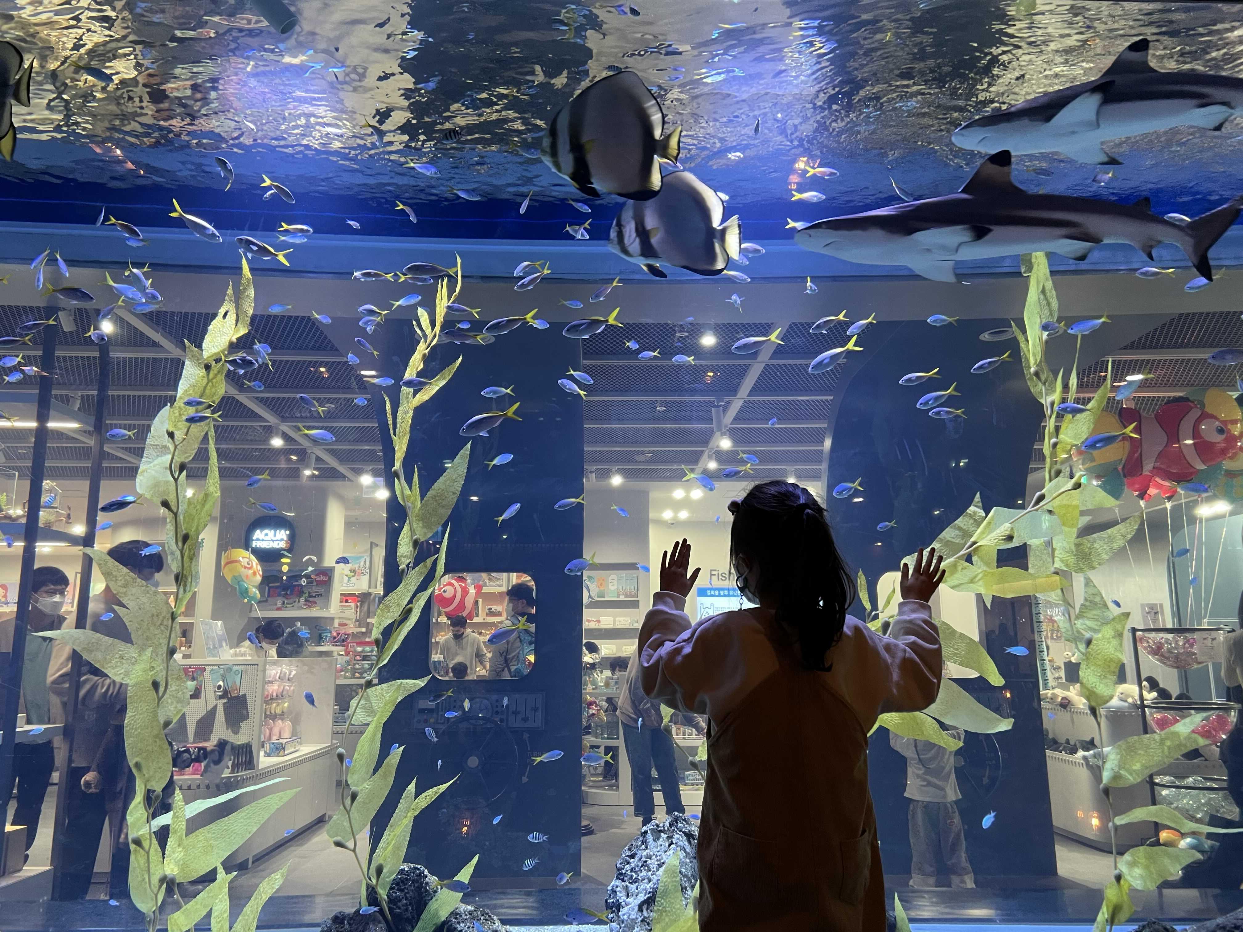 주문한 음료와 아이스크림이 나오기를 기다리며 수족관 구경이 한창인 여섯살 언니는 크고작은 물고기들이 헤엄치는 모습을 바라보며 싱글벙글 하더라구요😄