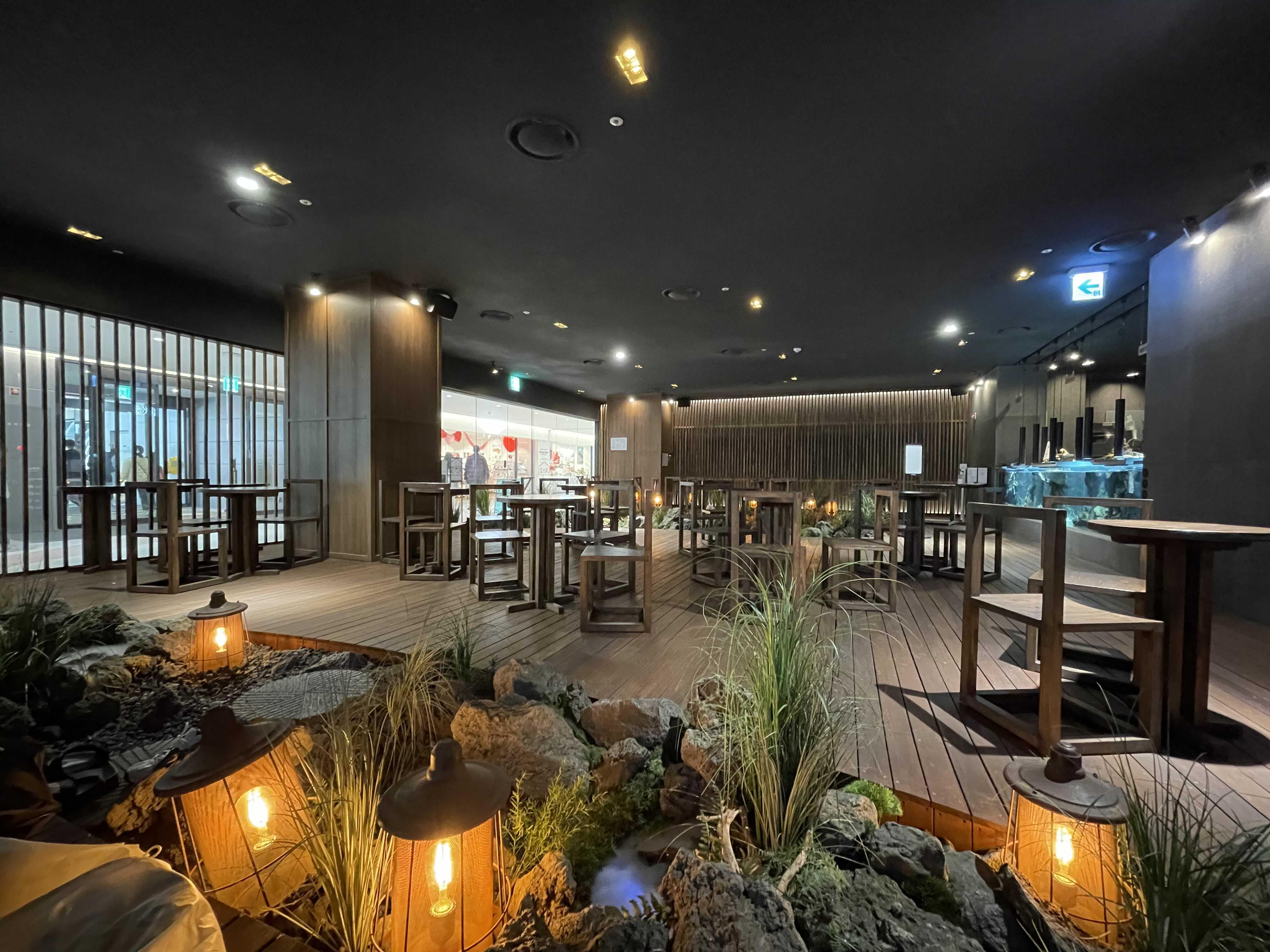 사진상 다소 밝게 나온면이 없지않아 실제 분위기는 사진보다는 어두워요~ 그렇다고 뭐 음침한 그런 분위기는 아니구요~ 어둡지만 우드톤의 인테리어와 따뜻한 느낌의 조명이 안락함을 더해준답니다~