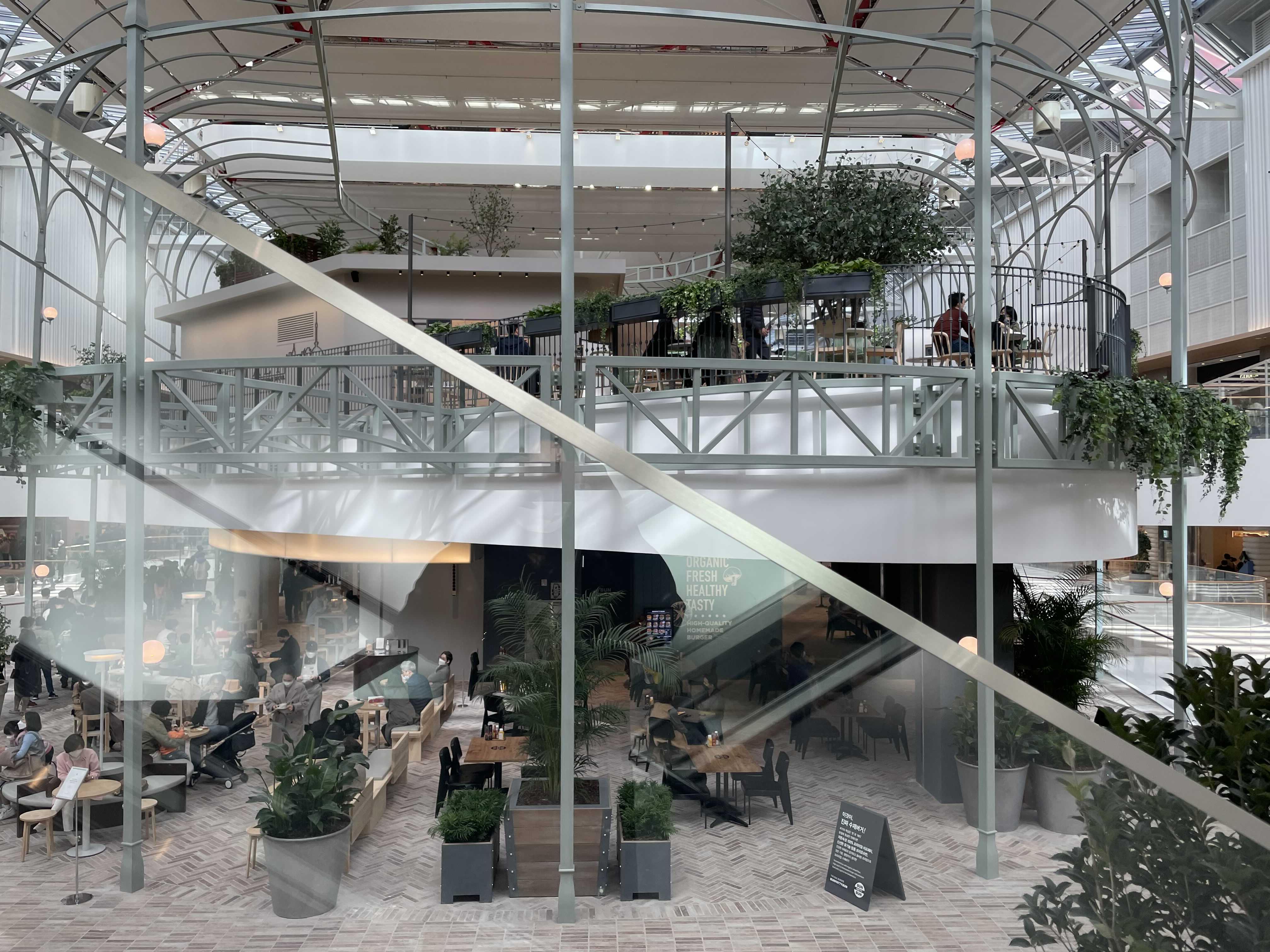공원을 스윽 떠서 실내로 옮겨다 놓은것 같은 느낌의 사운즈포레스트 덕분에 개방감 넘치고 싱그러운 느낌을 주는 한편 더현대서울은 백화점이라는 느낌보다는 쇼핑몰에 좀 더 가까운 느낌이었던 것 같아요~ 아마도 이런 형태의 백화점이 그동안 국내에는 전무했기 때문이지 싶은데요~ 나름 혁신적이고 새로운 시도를 한것 같아 전 보기 좋았어요😄