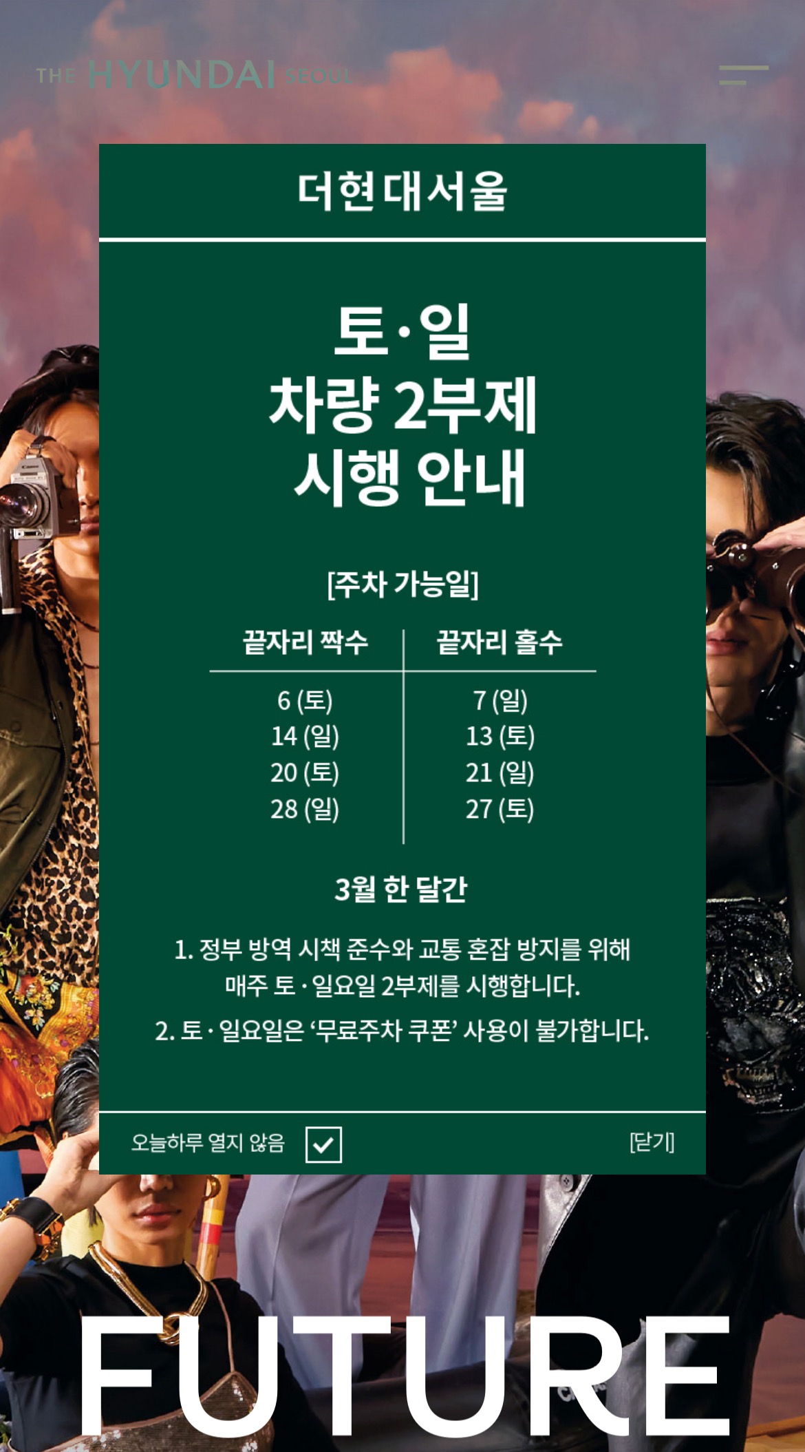 다만 앞으로 3월 한달동안 주말에는 주차무료 쿠폰 사용이 제한되고 차량 끝번호에 따라 주차장 이용이 제한되는 요일이 있는점을 신경써야 하는만큼 방문계획이 있으신분들은 가급적 대중교통을 이용하는편이 좋을것 같네요😊