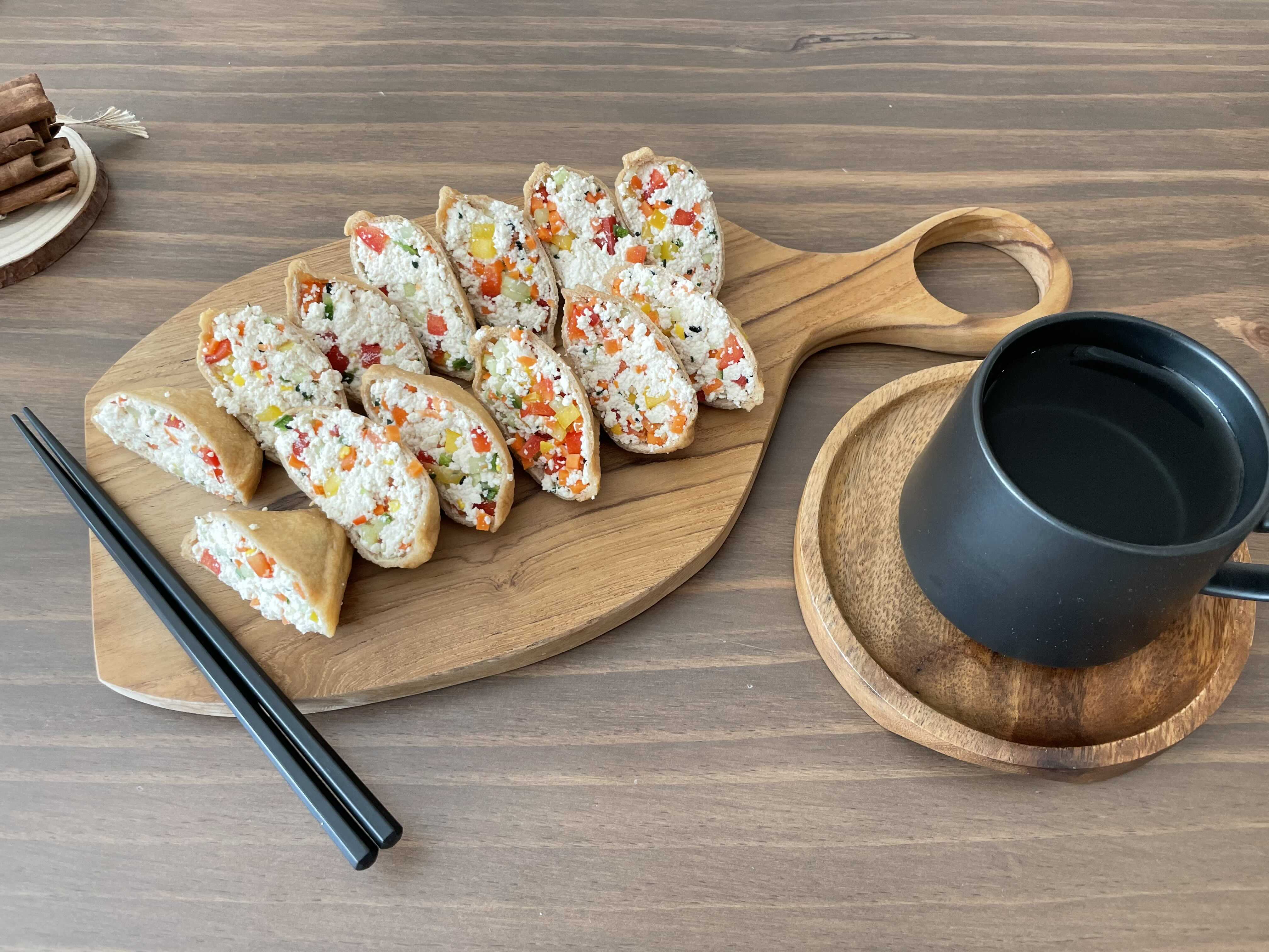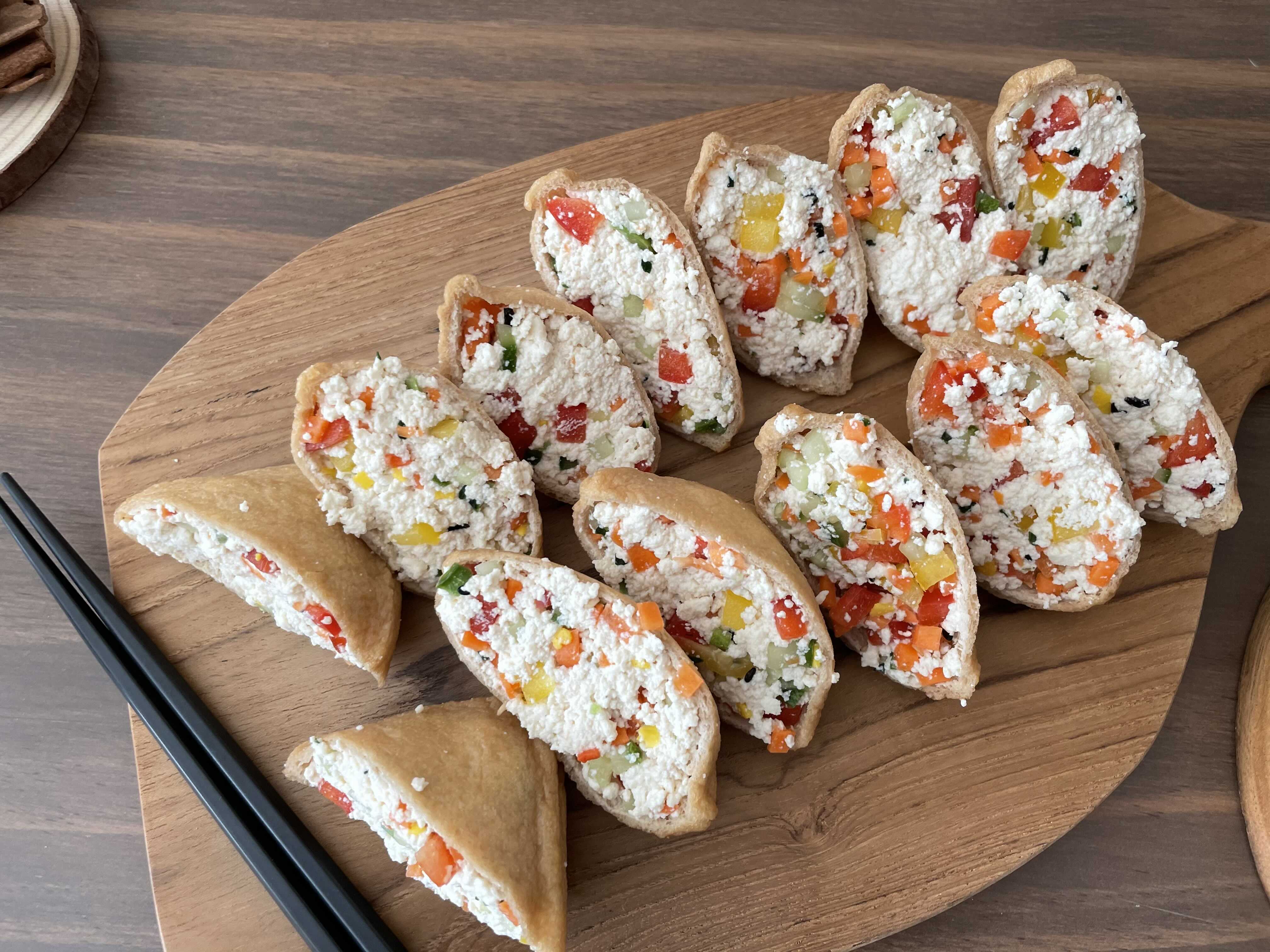 조리과정이 매우 단순하기 때문에 누구나 쉽게 만들 수 있는 두부유부초밥은 밥이 없어 뭔가 어색할것 같은 느낌이지만 막상 먹어보면 밥이 들어간 유부초밥보다 훨씬 더 산뜻하고 소화기에 부담도 덜어주는 느낌이구요 서걱거리는 야채들과의 조화가 아주 괜찮답니다~