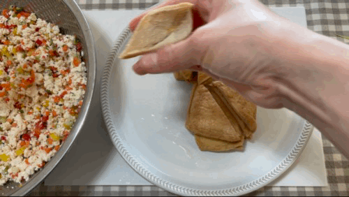 물기를 짜낸 두부는 이제 손질해둔 야채들위로 담아주세요