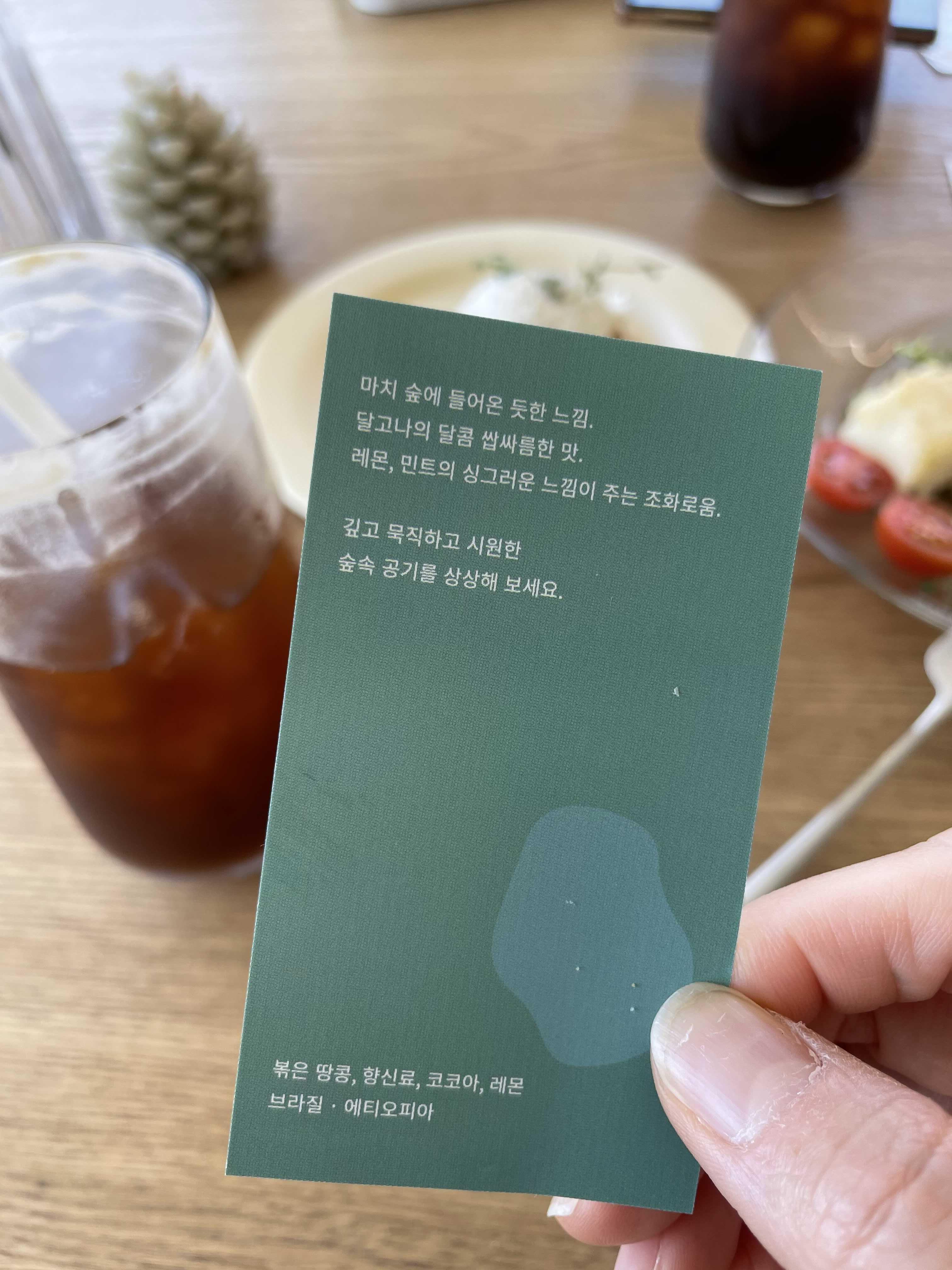 마치 숲에 들어온 느낌이 뭔지는 모르겠지만 산미가 가득하고 향긋하니 정말정말 맛있더라구요~