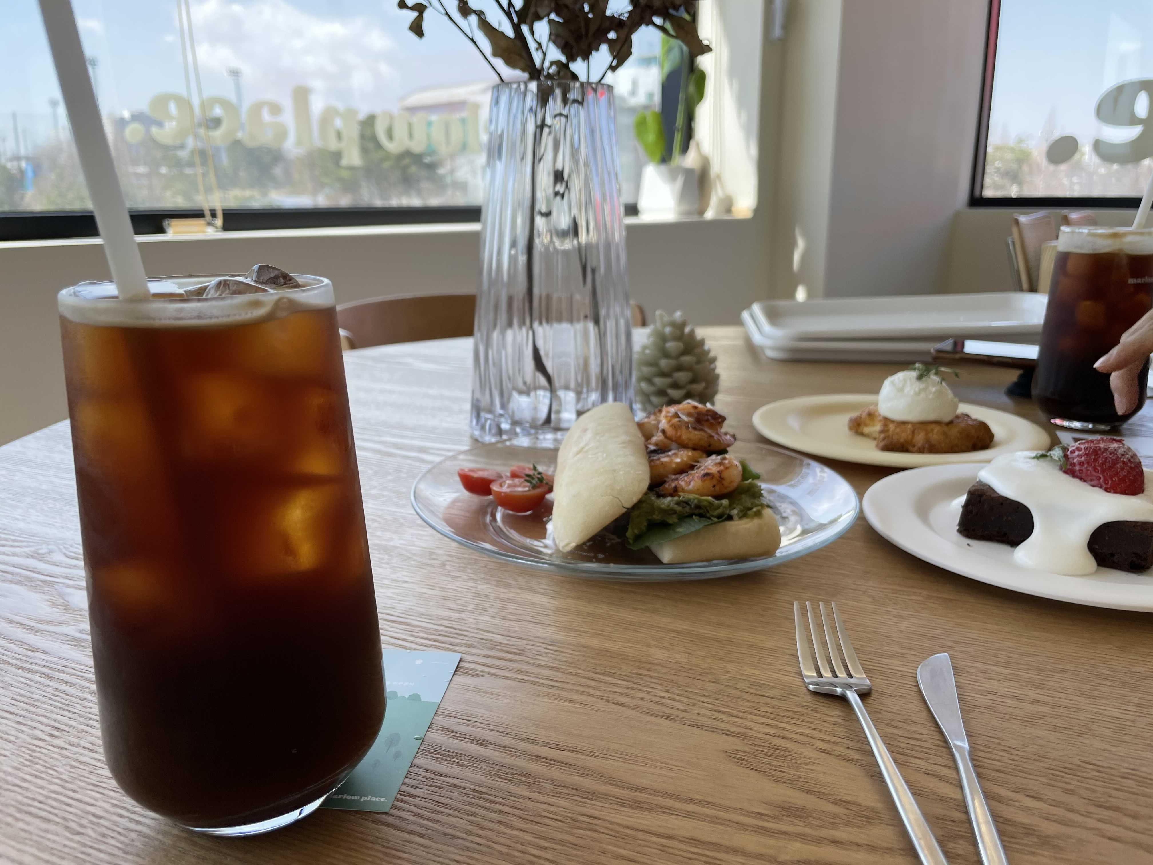 저는 이날 함께한 친구와 함께 풍요로운땅 아이스 아메한잔과 숲 아이스 아메한잔 그리고 새우아보카도 샌드위치와 브라우니 한조각, 버터 크림치즈 스콘 한조각을 주문해 봤어요~