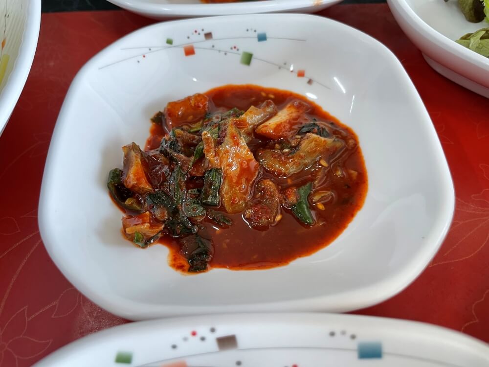 또다른 밑반찬으로 제공된 회국수예요~ 부드러운 육질이 숙성회를 올린것 같은 느낌의 회국수역시 이걸 그냥 이리 무상으로 제공해주시는 반찬으로 먹어도 되는걸까 싶을만치 맛있었어요😭😭😭 메인메뉴가 나오길 기다리면서 밑반찬들을 먹어보는데 감동의 연속입니다🥺