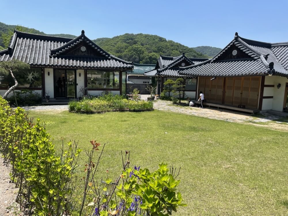 푸릇푸릇한 잔디마당 곁으로 예쁘게 자리하고 있는 카페오르의 모습이예요💕 한옥 두채 내부에 있는 쾌적한 실내좌석과 더불어 한옥마루에 걸터 앉아 즐기실 수 있는 야외좌석이 마련되어 있는 카페는 머무르는 것만으로 쉼이 되는 힐링 플레이스랍니다🥰