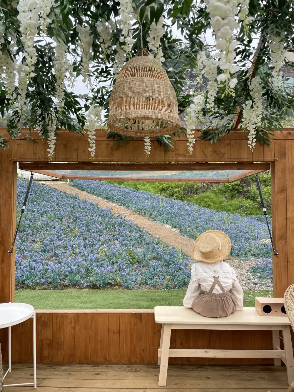 새하얀 꽃밭에 마련된 이곳 포토존에서도 사진이 정말 잘 나오더라구요~ 아침까지 파랬던 하늘이 흐려진탓에 자연광이 못내 아쉽기도 했지만 그래도 배경이 예쁜탓에 사진은 참 예쁘게 잘 나오더라구요😊 날씨 좋은날 가시면 인생샷을 마구 남기실 수 있을거예요💕