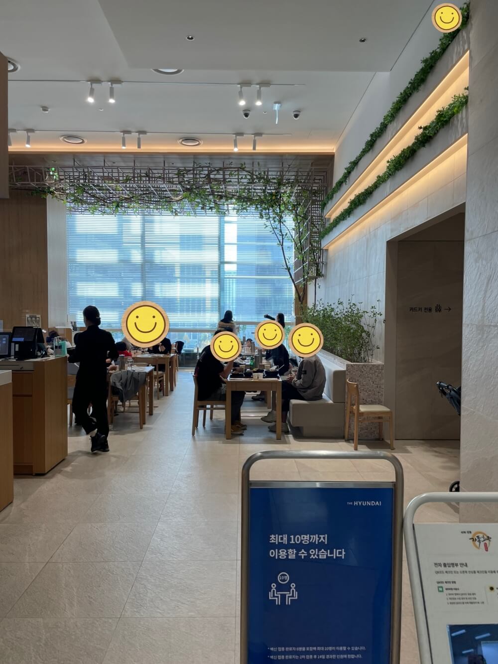 코로나 이후로 저는 식당을 이용할때면 많은 사람들로 북적이는걸 피하고자 늘 브레이크 타임 직전이나 아얘 오픈 시간에 이용을 하는편인데요~ 이날은 점심 피크시간이였음에도 사람이 그리 많지 않아서 여유롭게 식당이용 가능했답니다~ 이제는 주말이여도 어느정도 백화점 열기가 수그러든것 같아요😅