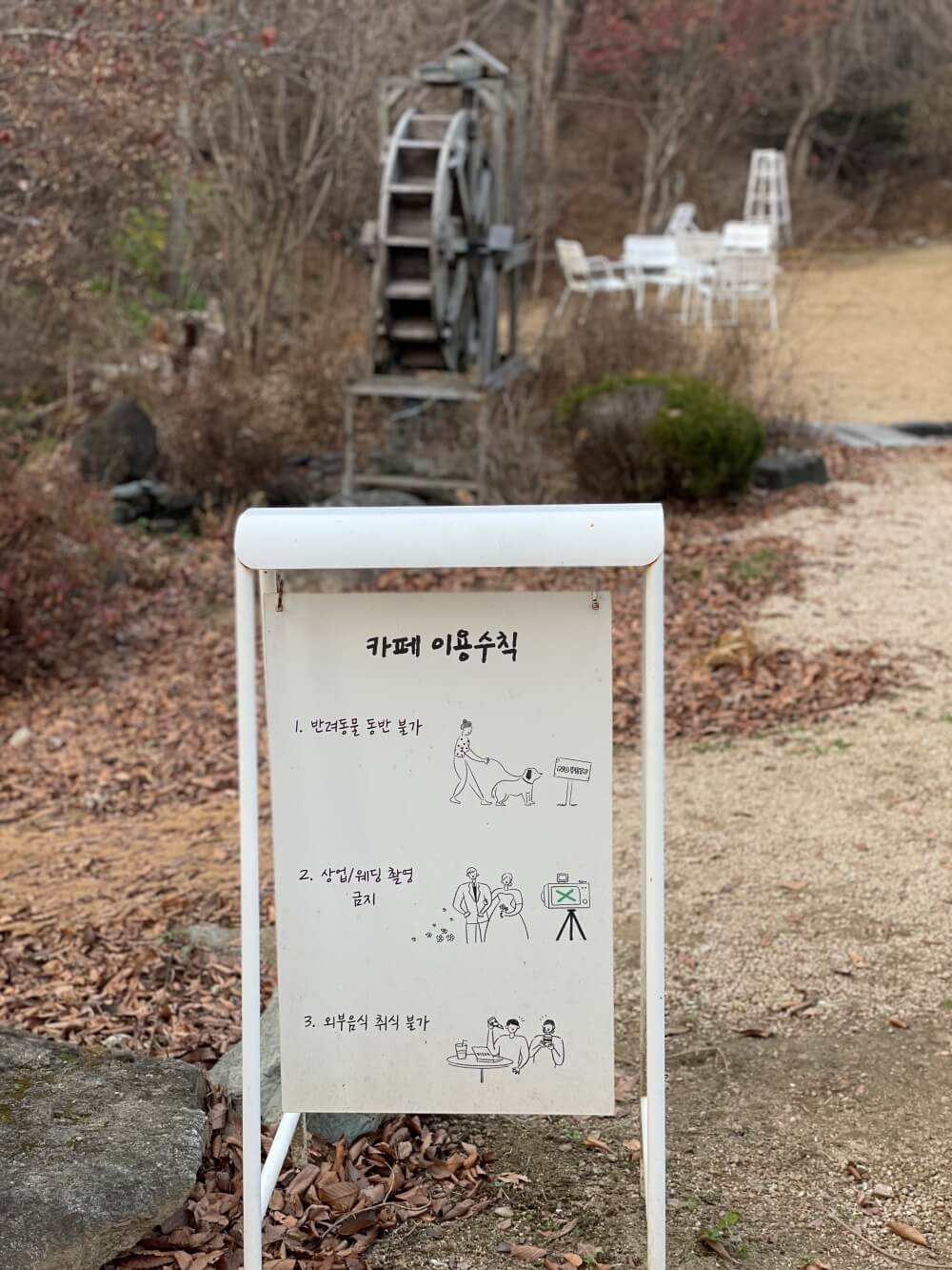 예스키즈존인 카페인 러스틱하우스지만 안타깝게도 반여동물의 출입은 제한하고 있답니다~ 주변이 산으로 에워싸고 있는 구조의 카페는 전반적인 분위기가 좋아서 촬영 장소로도 손색이 없긴 하지만 상업촬영이나 웨촬도 할 수 가 없다고 하네요~ 단독룸 이용시 외부음식을 싸와서 이용하는것도 제한하고 있으니 이용에 참고 하세요~