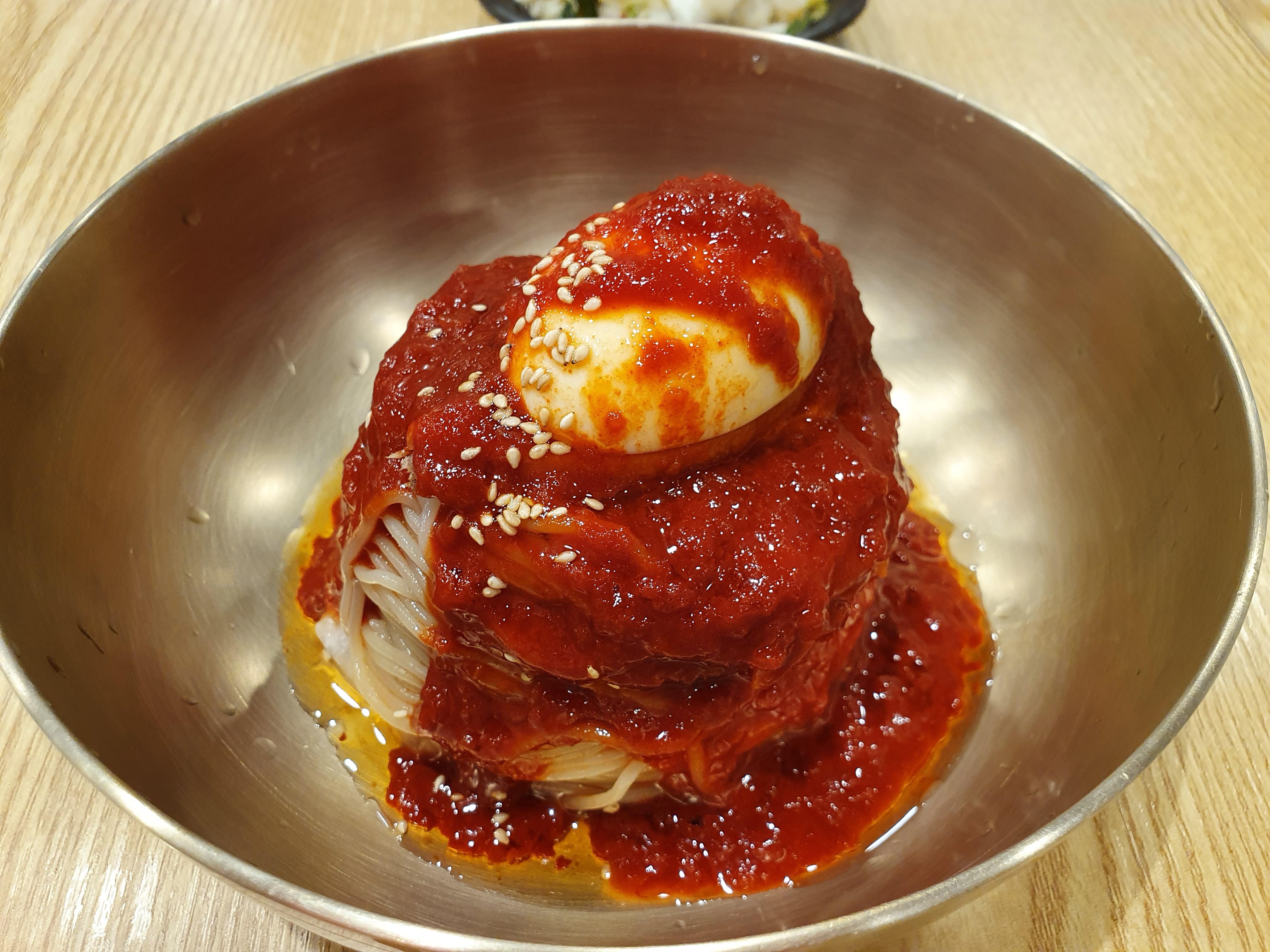 비냉은 고춧가루양념이 담뿍 끼얹져 나왔어요