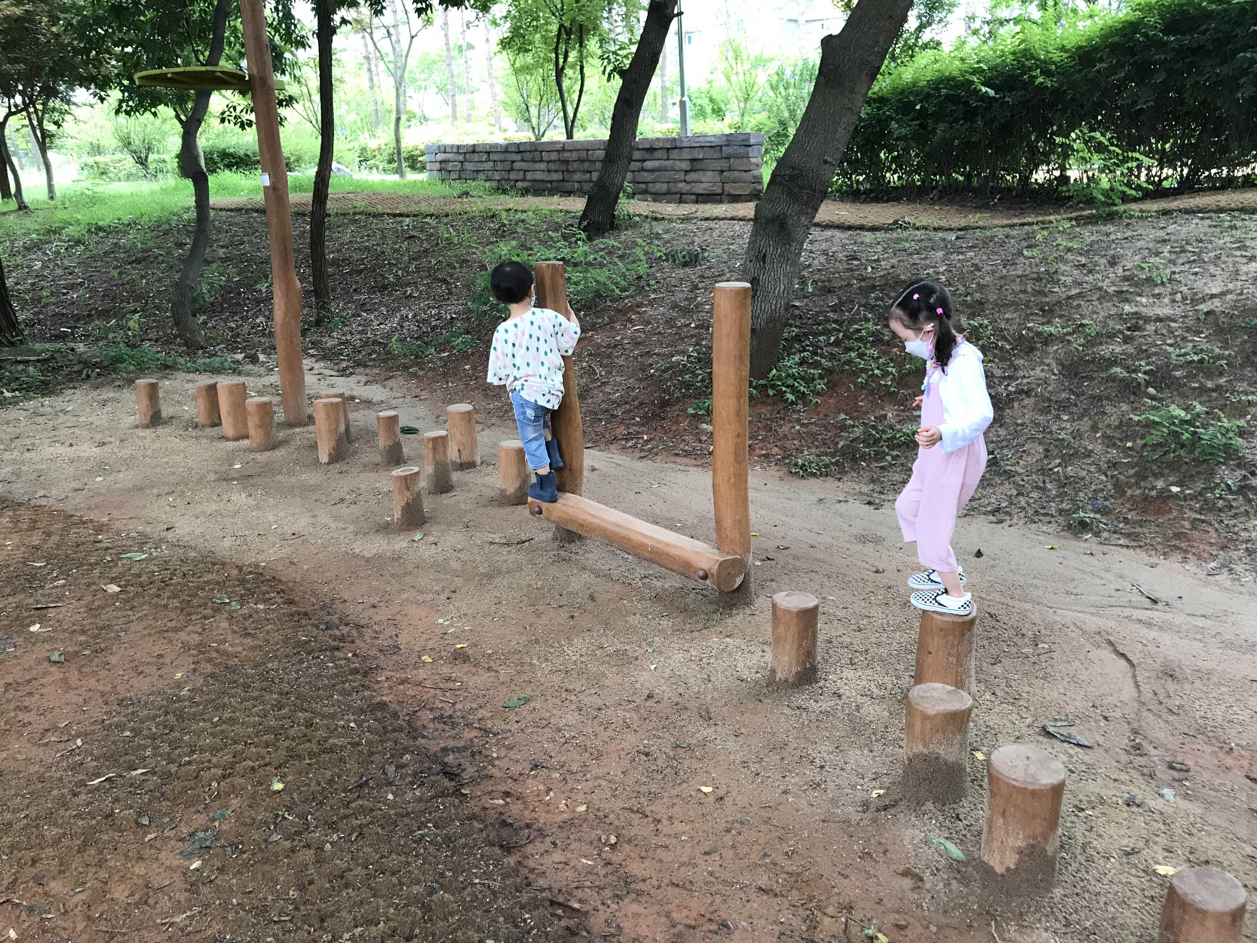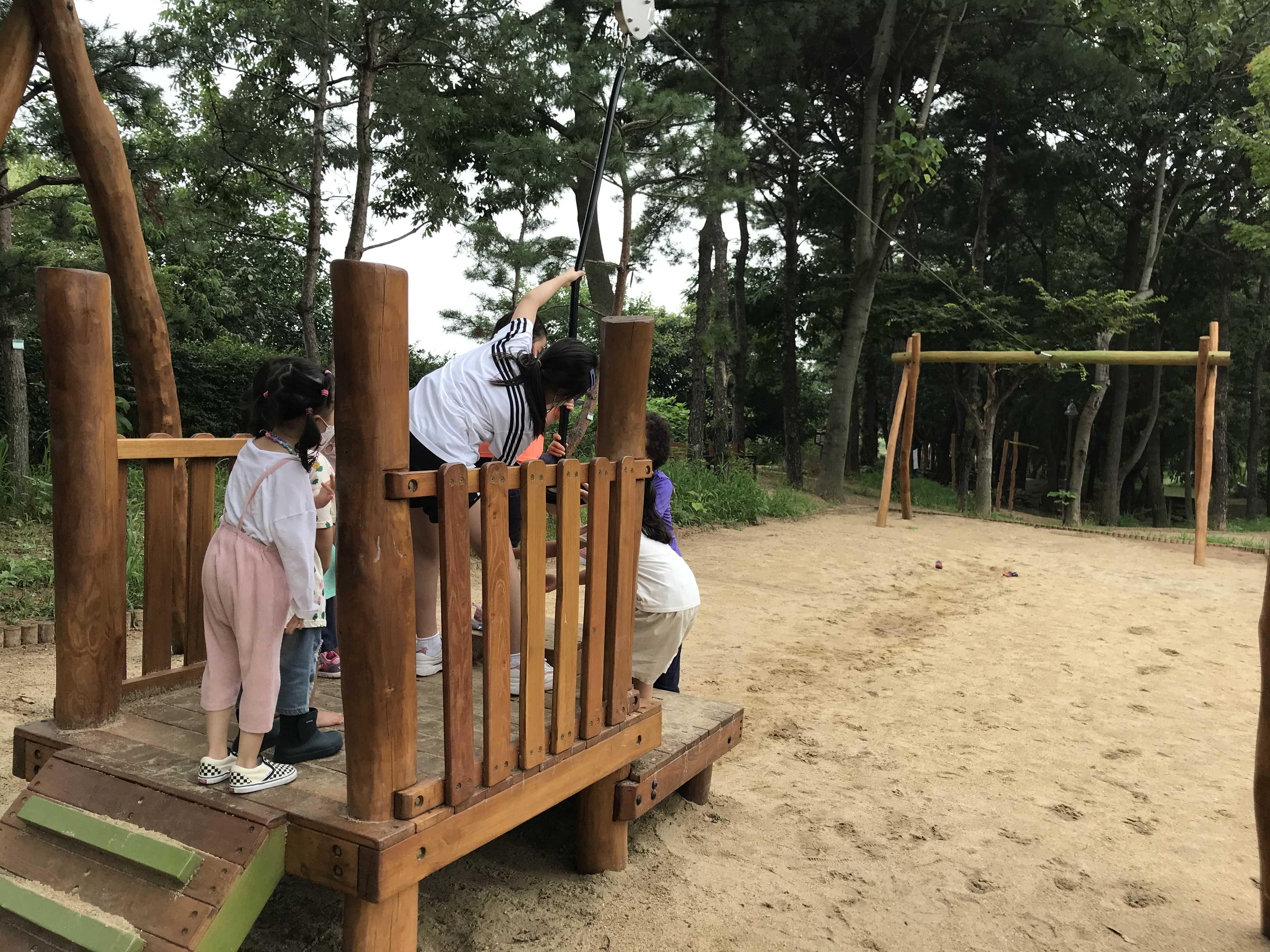 공원내 놀이기구 모두 나무로 만들어져 있어요~