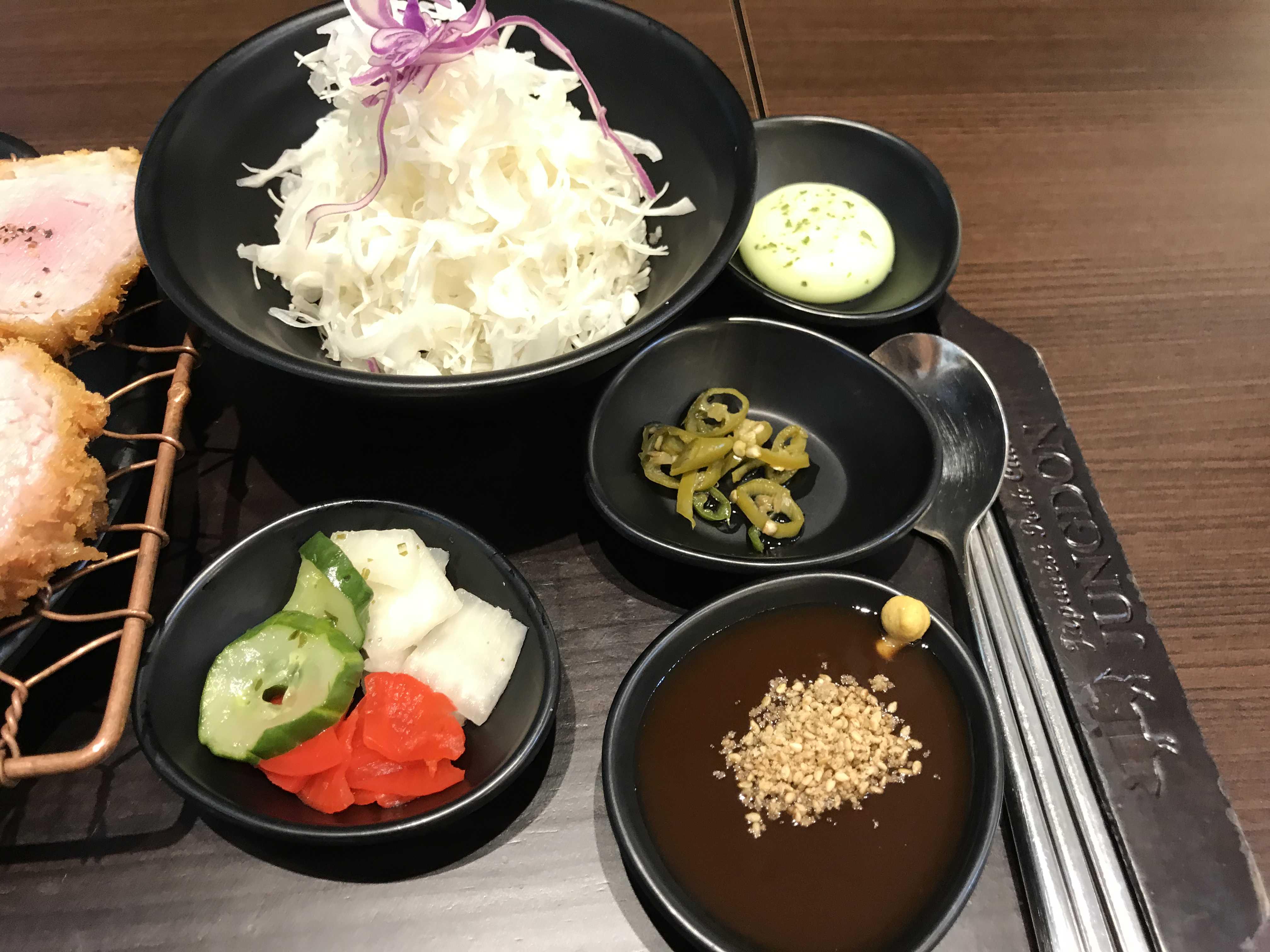 기본돈까스소를 비롯해 피클과 양배추샐러드