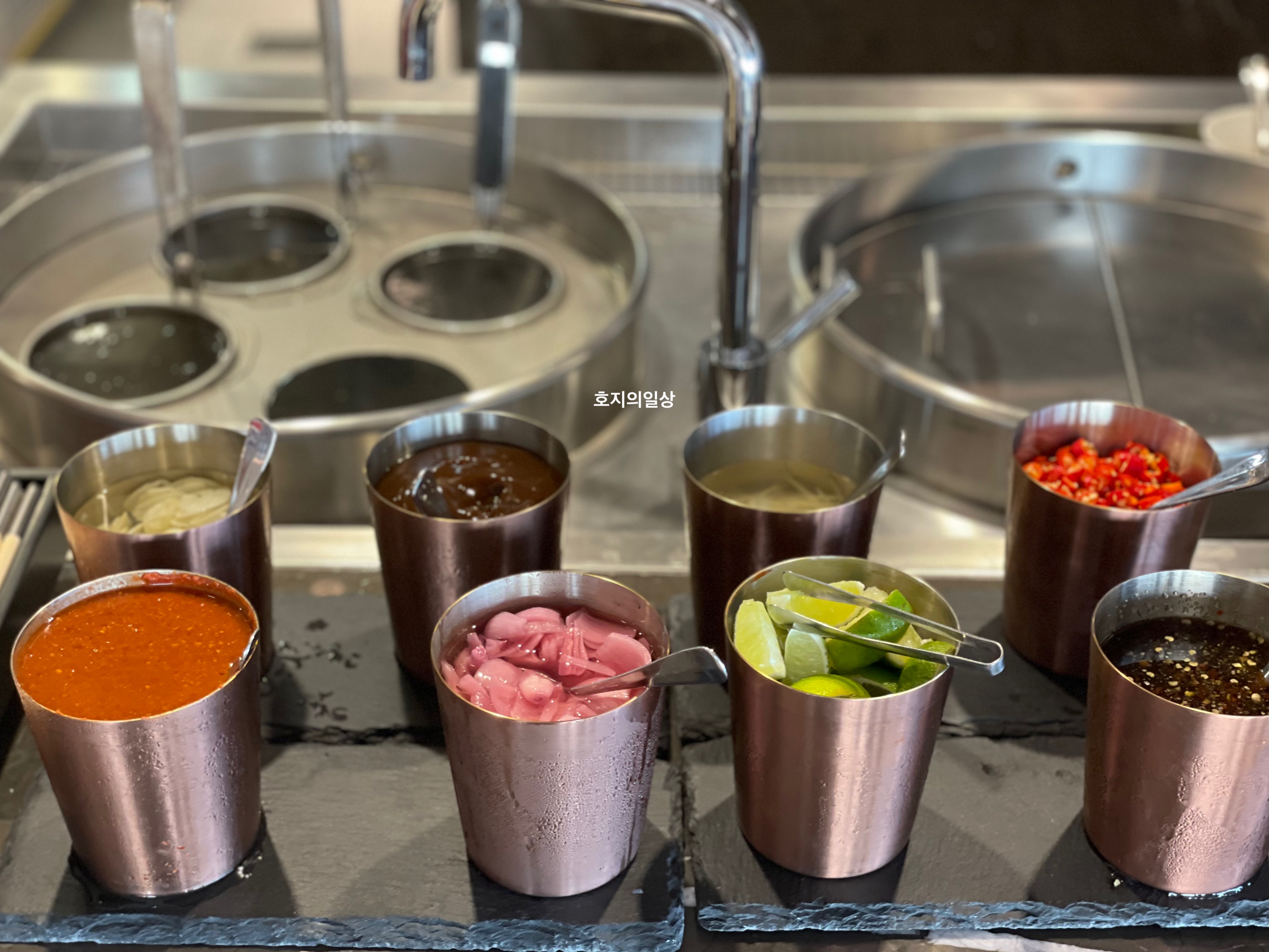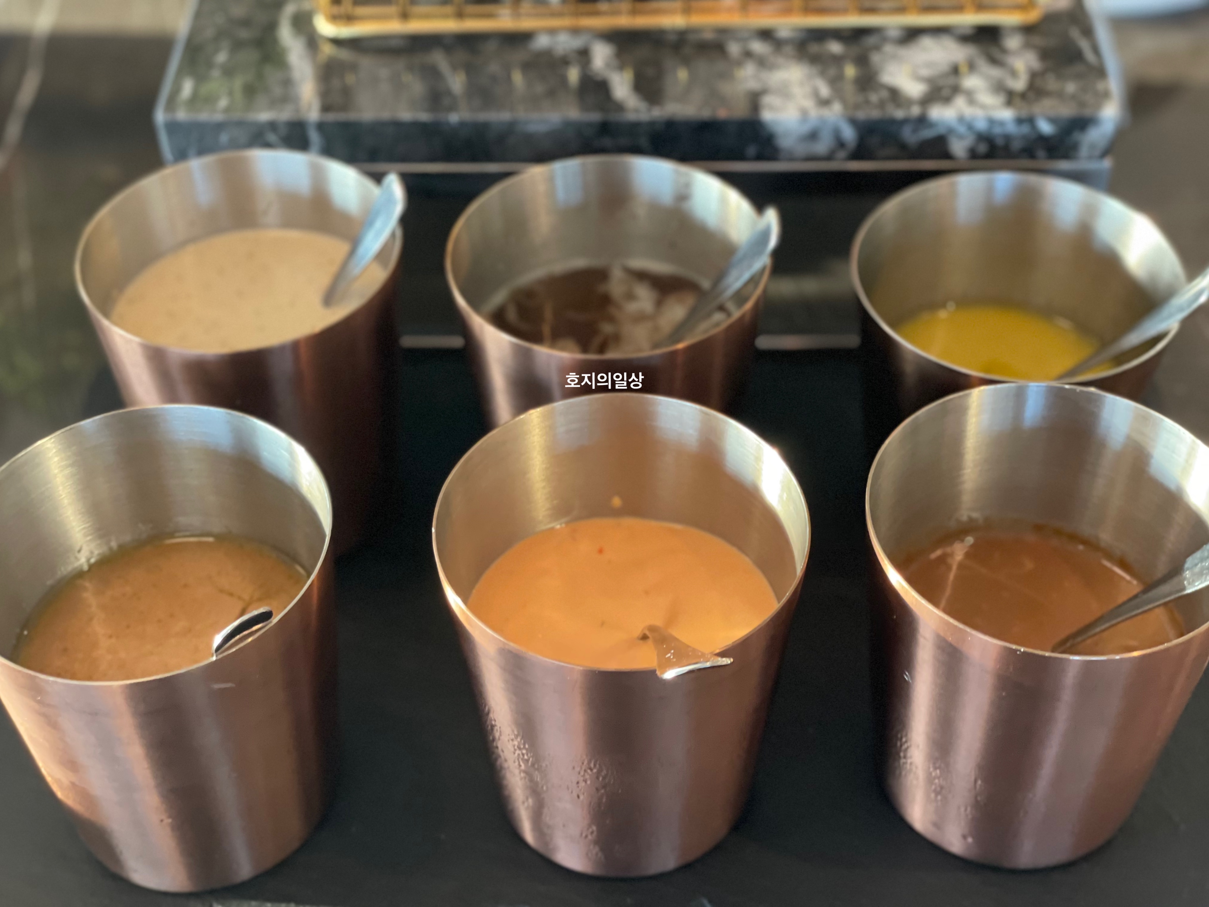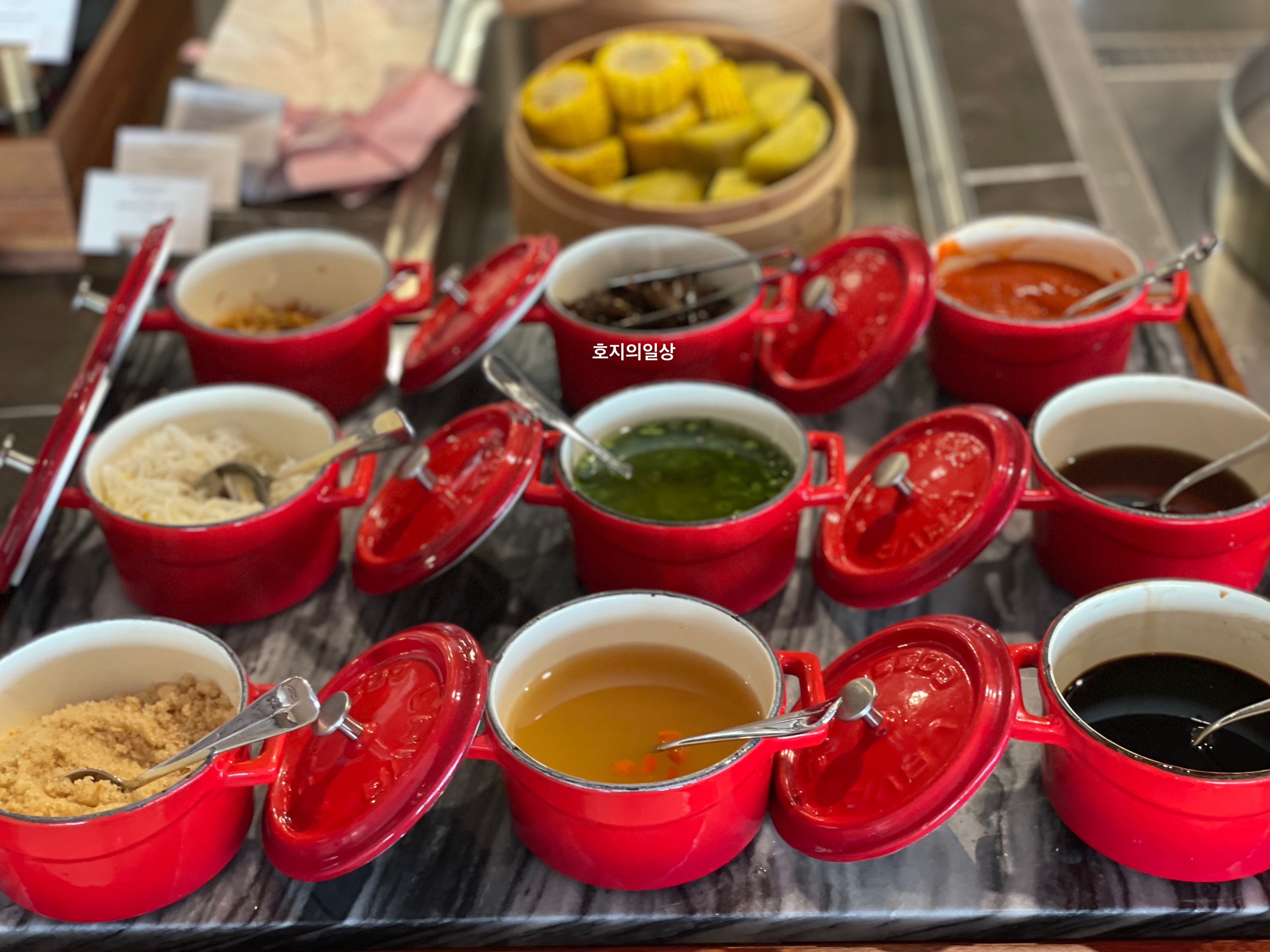 다양한 소스류도 정갈하게 담겨진 모습이예요