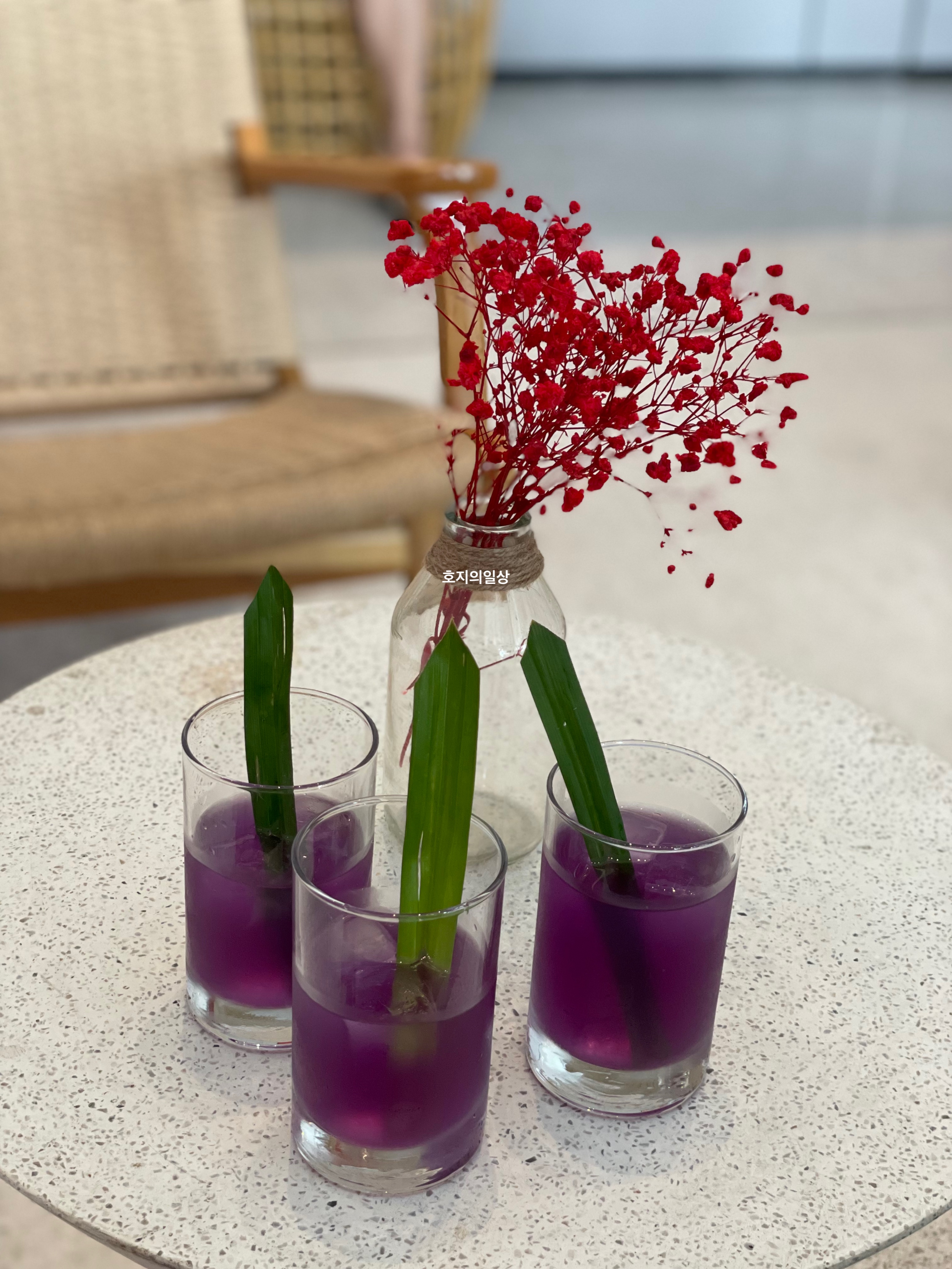 시원하고 달달한 주스를 마시며