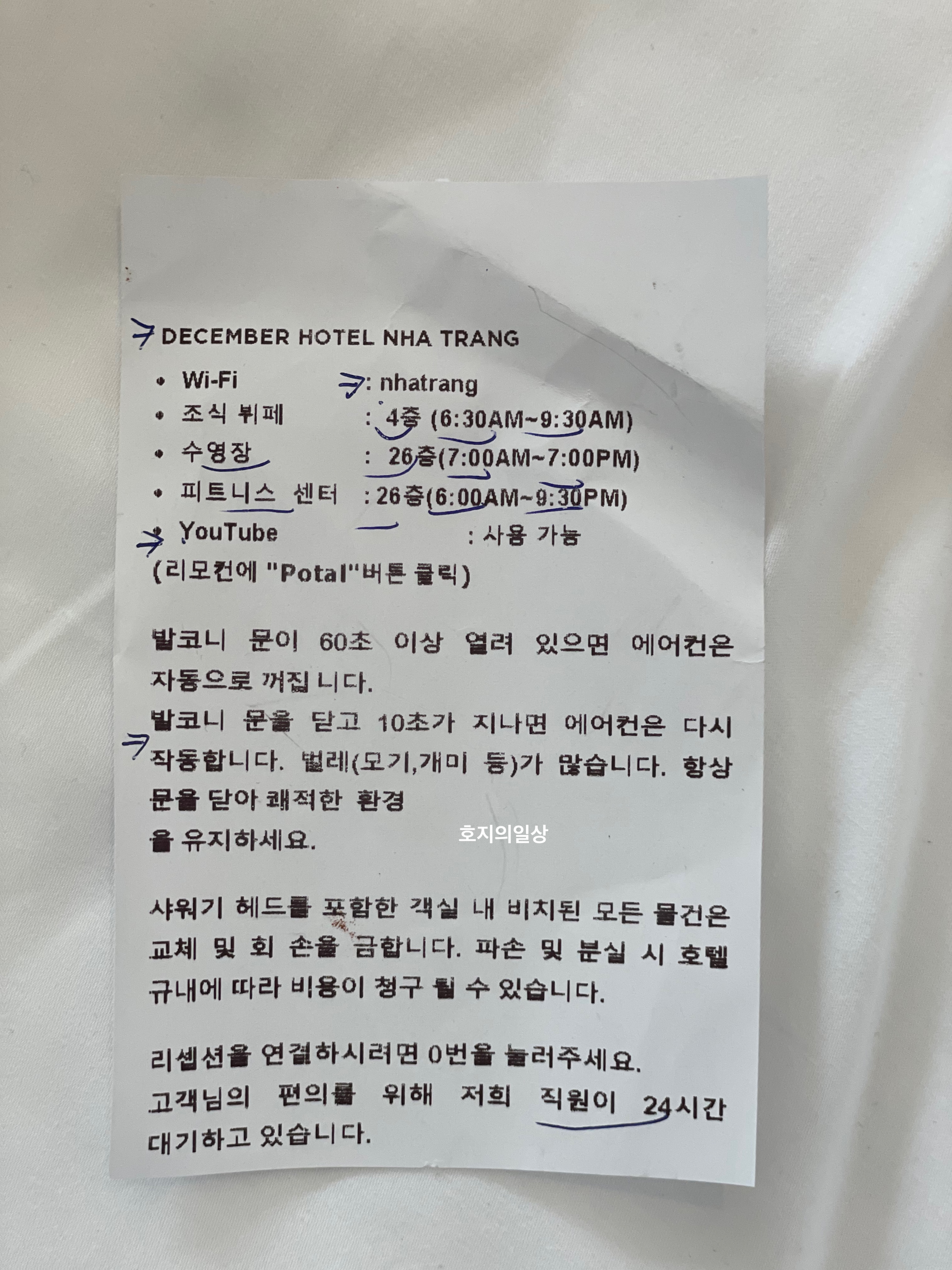 디셈버호텔의 이용 시간도 찍어봤어요