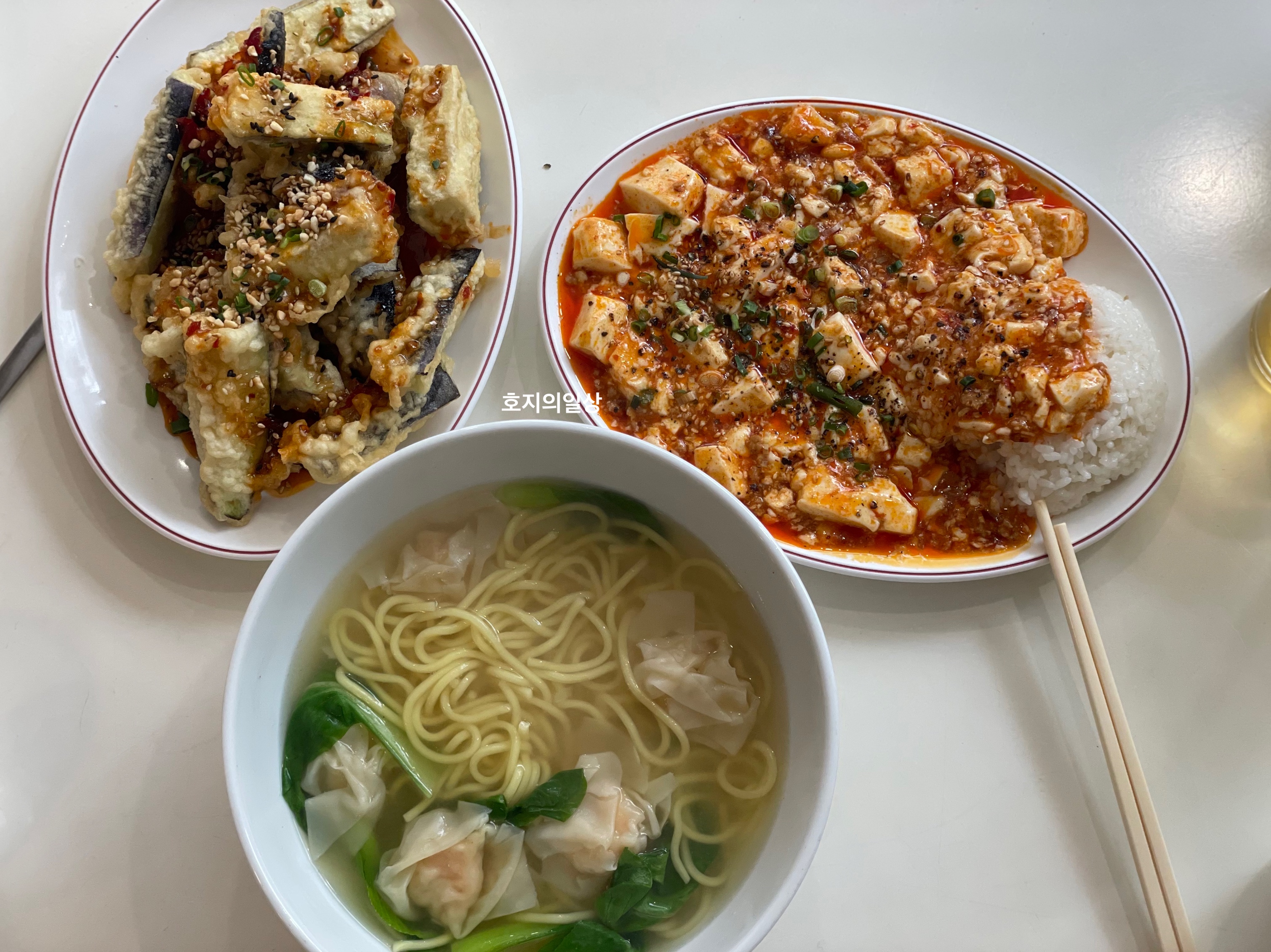 제일 먼저 마파두부밥과 완탕면