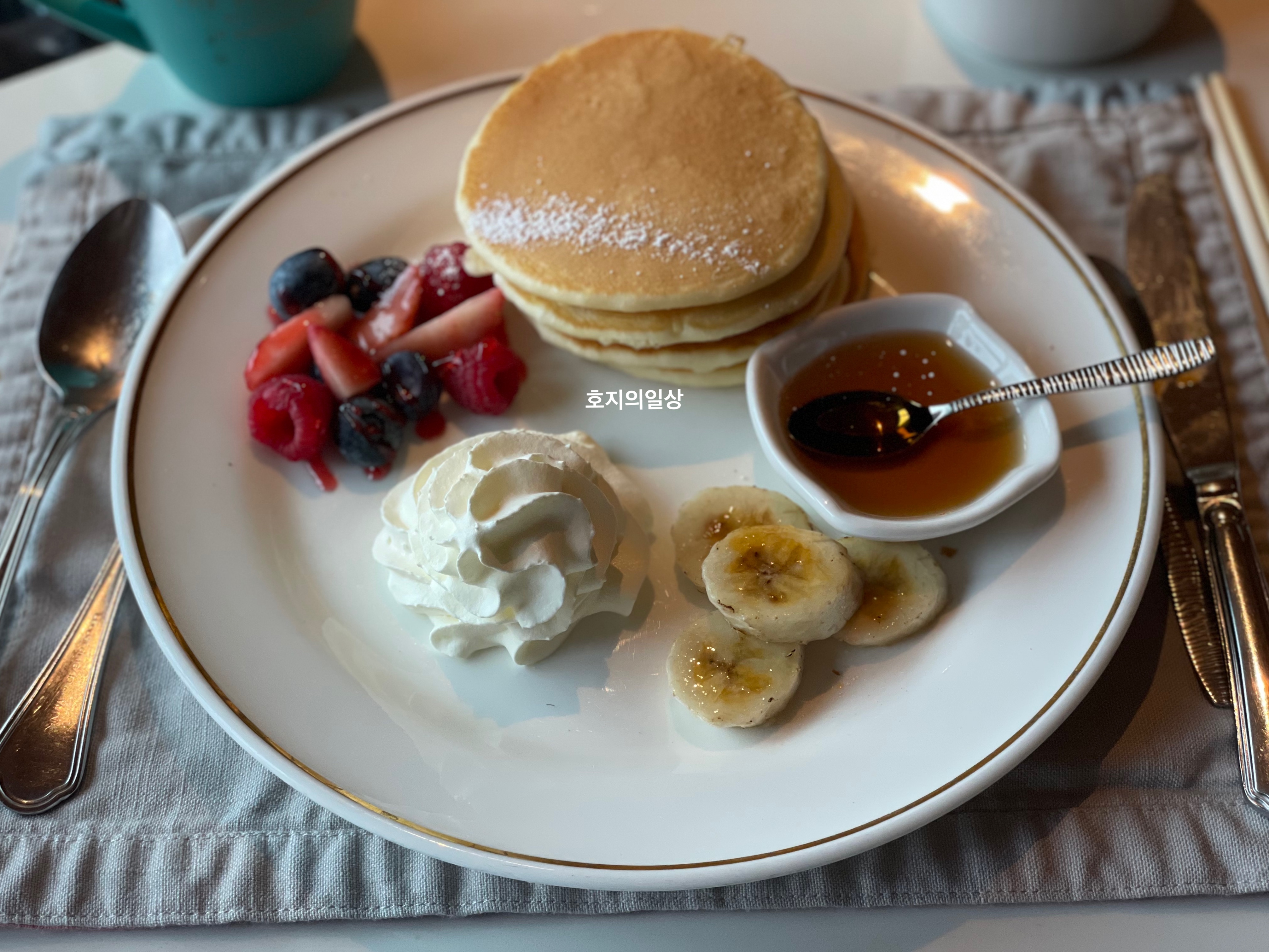 갓구운 팬케이크와 메이플시럽은👍