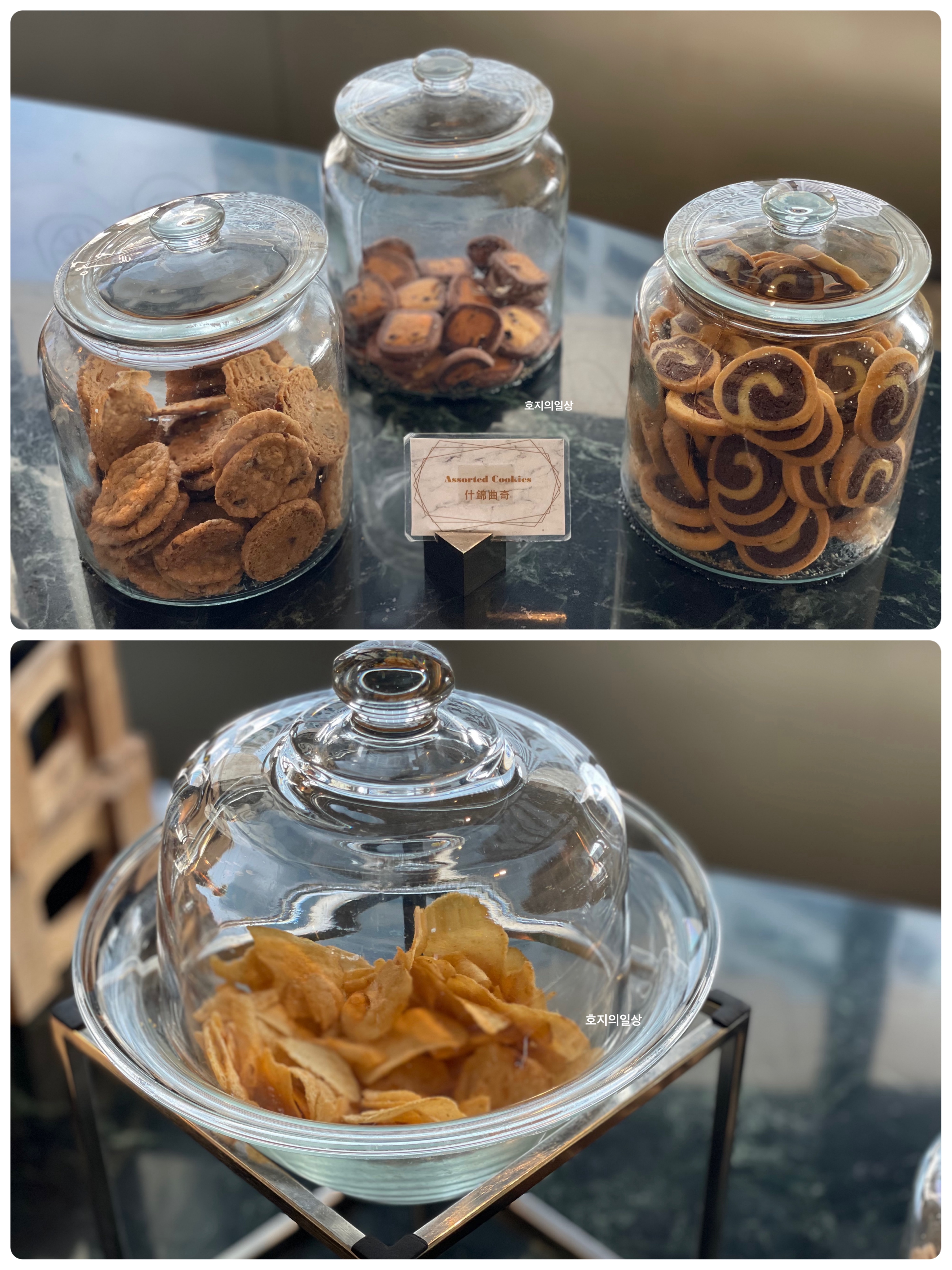 핑거푸드 이외에도 쿠키류와 신선한 감자칩까지