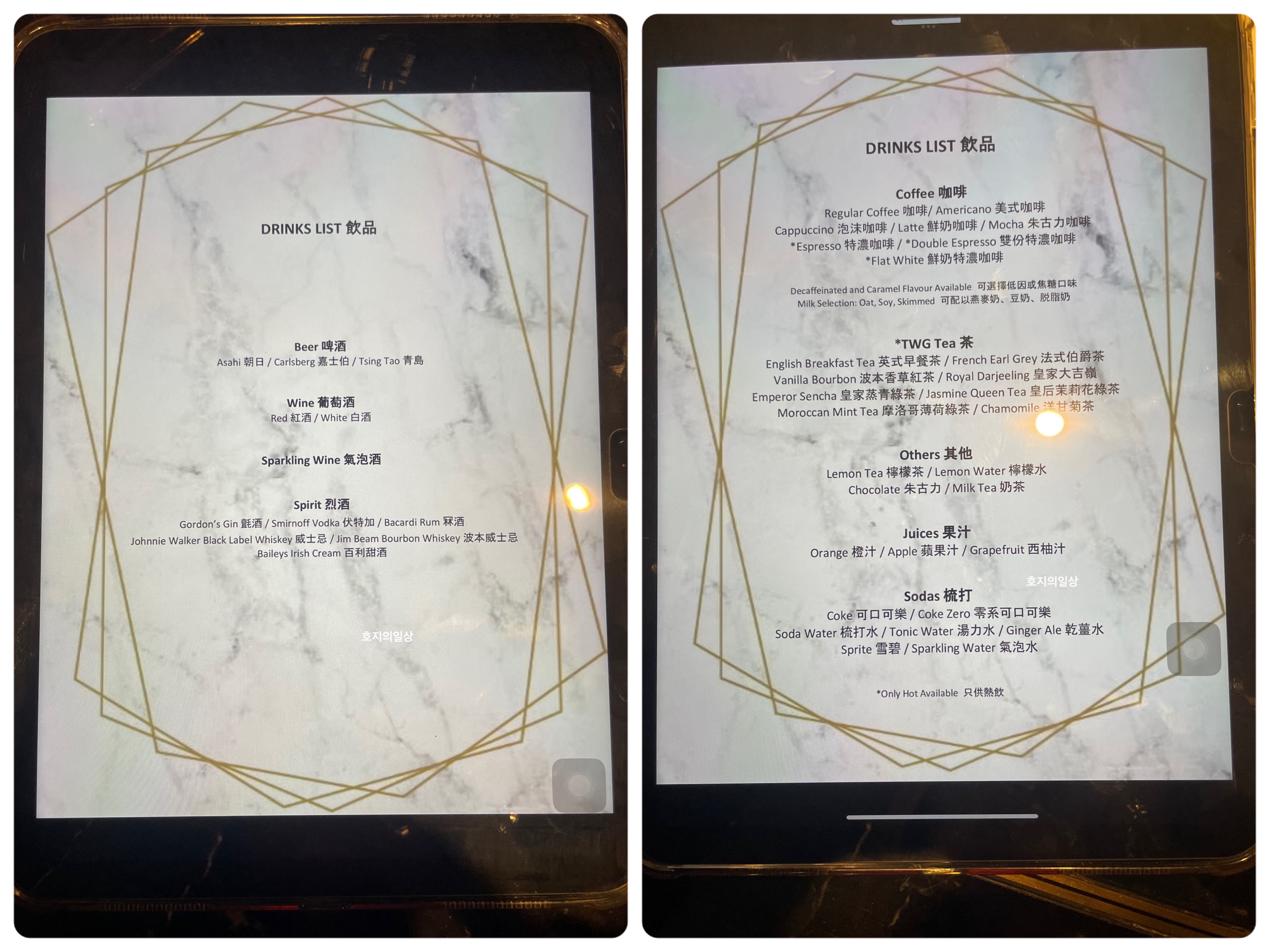테이블에서 주문가능했던 음료 이외에