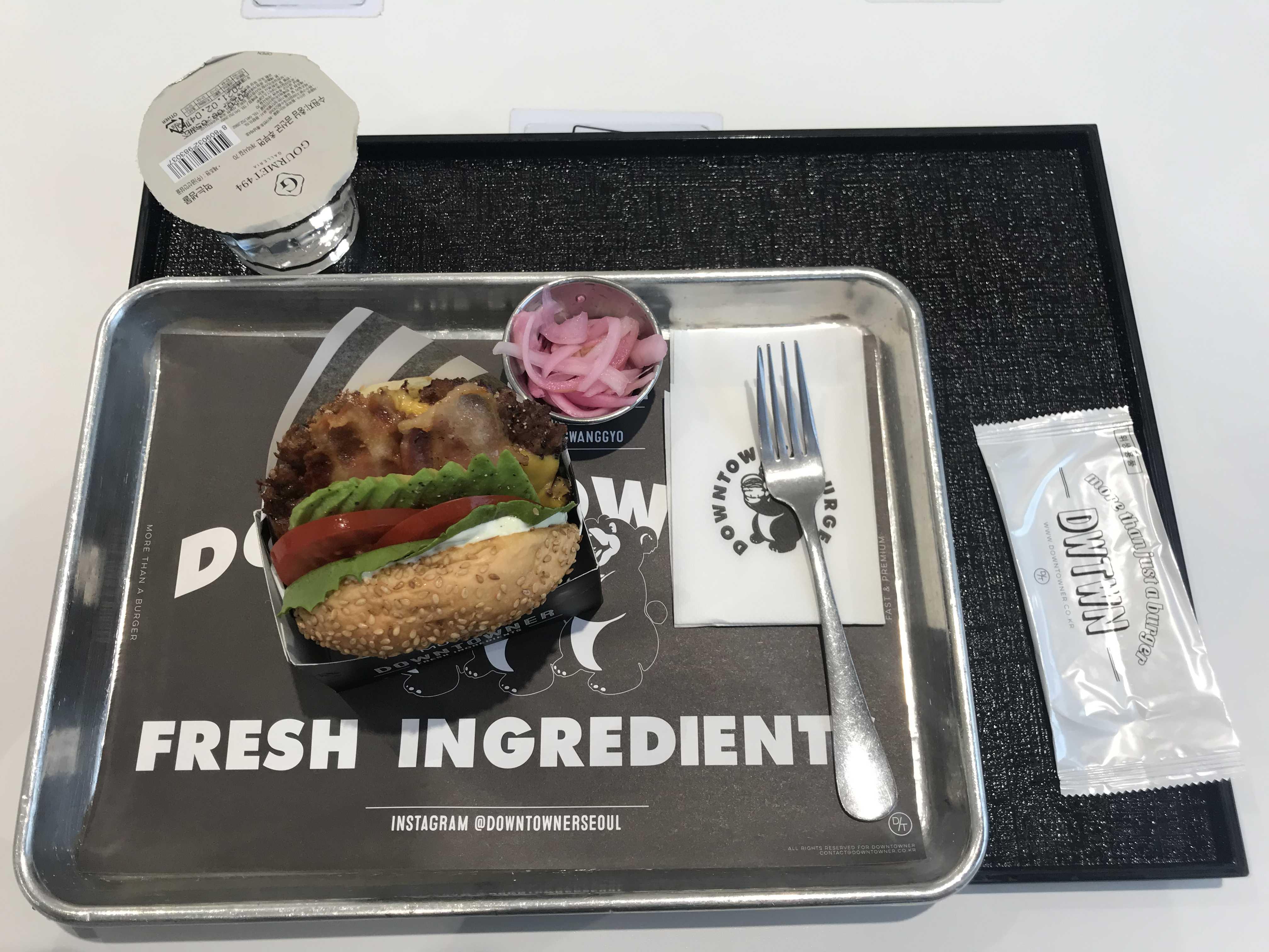 진동벨을 놓고 기다리고 있으면 제가 주문한 버거가 테이블로 옵니다