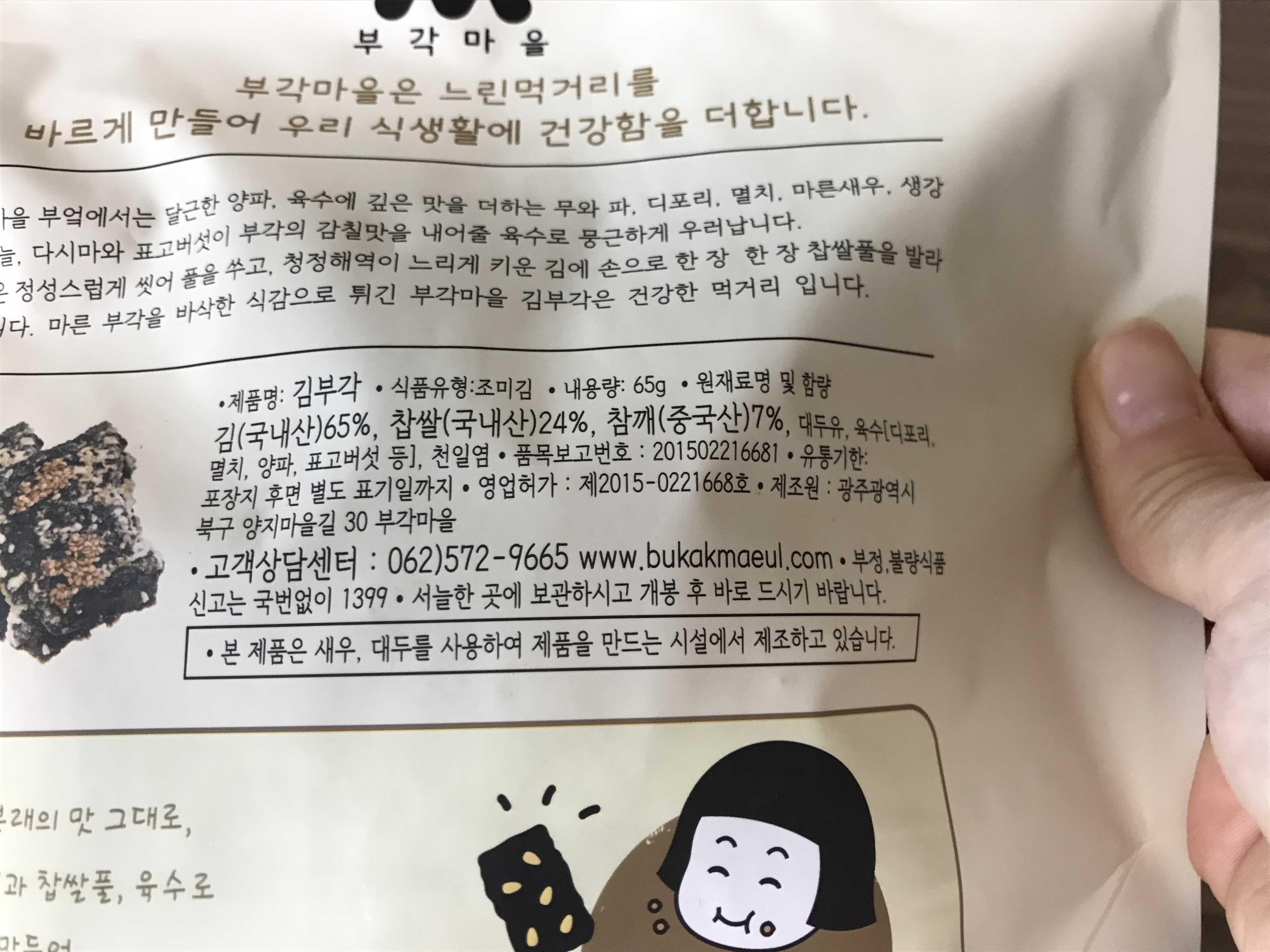 국내산 김과 국내산 찹쌀을 사용해서 만든 부각마을 김부각 아쉽게도 참깨는 중국산이네요~ 그래도 들어간 재료들을 보시면 인위적인 합성 첨가물 없이 건강하게 만들어낸 제품임을 알 수 있어요